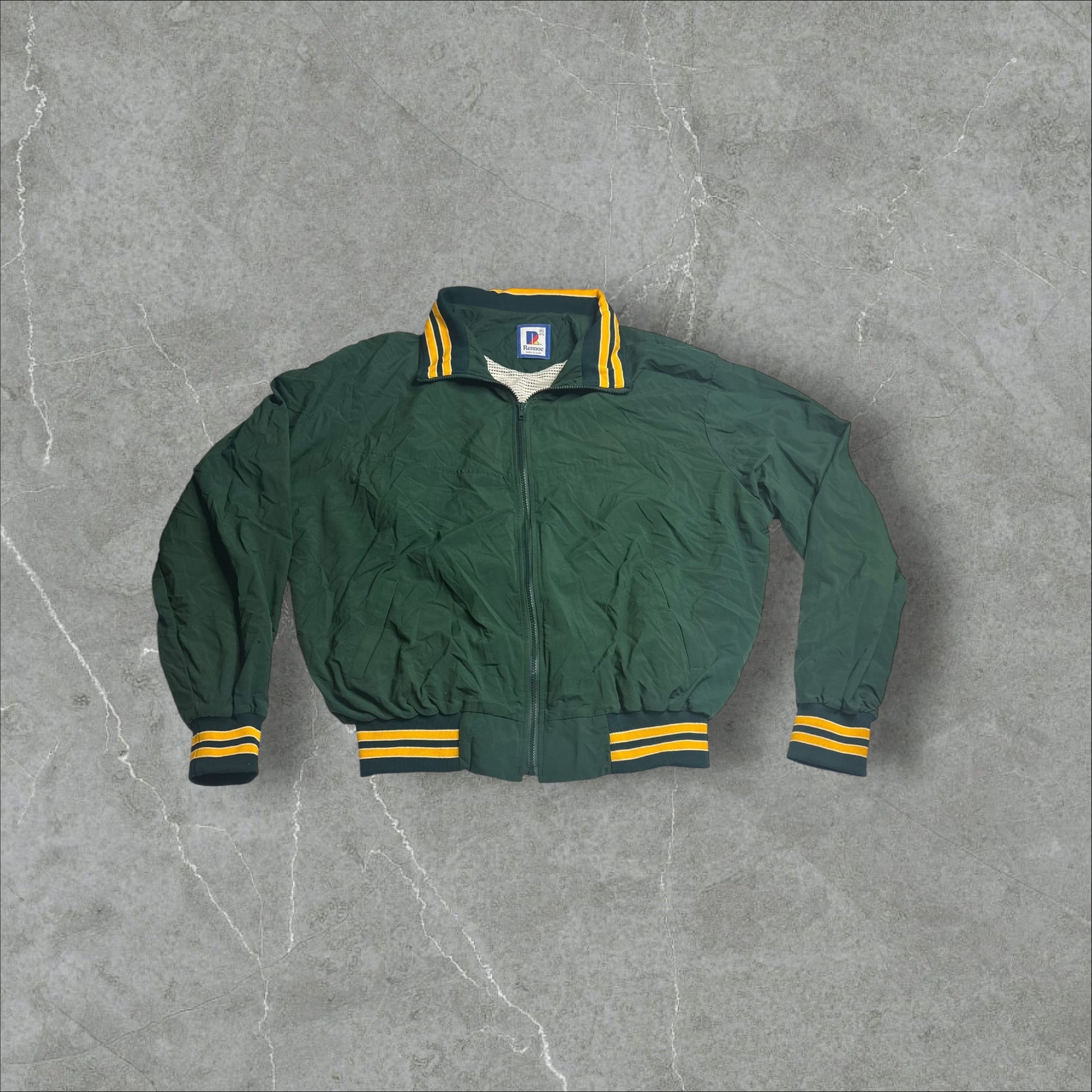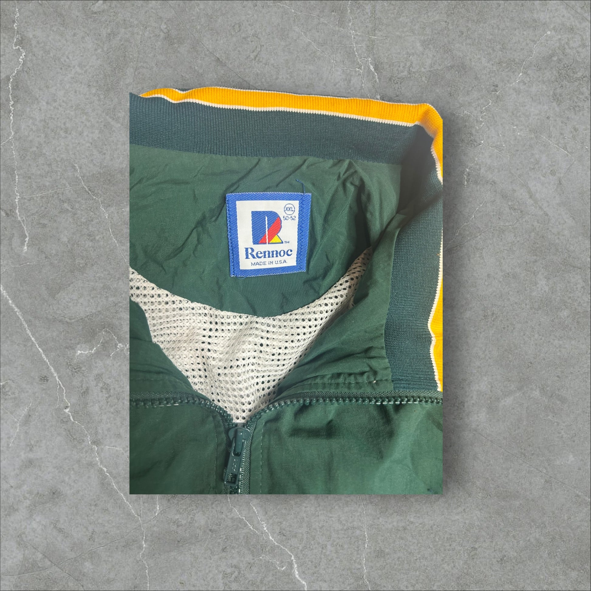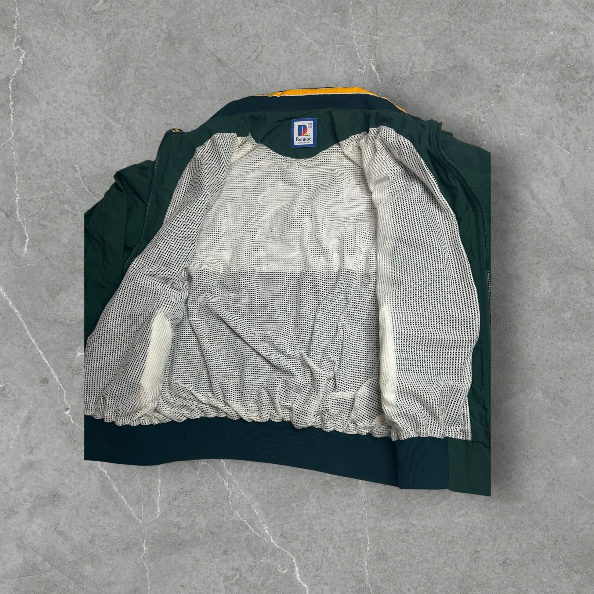 Rennoc America Made Green Bay Color Windbreaker Mesh Inside windbreaker clean inside. Panels.